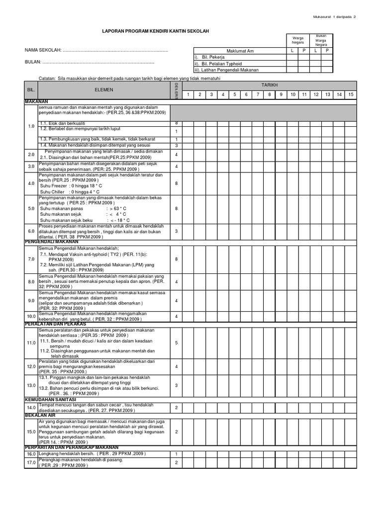 Buku Laporan Kendiri Kantin Sekolah Contoh Borang Kebersihan Sekolah Otosection Layanan Kantin Atau Kafetaria Merupakan Salah Satu Bentuk Layanan Khusus Di Sekolah Yang Berusaha Menyediakan Good 1959 Dalam Bukunya Dictionary from i0.wp.com Sjk (tamil) kem askar melayu daerah : Pusat lembah berkat telupid yuran : Share to twitter share to facebook share to pinterest. Kewajipan majikan adalah menyediakan borang ea perlu kepada semua pekerjanya samada yang masih aktif atau telah berhenti kerja. Januari 2013 bulan bil makanan ramuan dan makanan mentah berkualiti, label mematuhi peraturan, pembungkusan sempurna dan disimpan. Sentiasa berdisiplin, bersopan santun dan mengamalkan budi pekerti yang baik semasa di kantin. Sedikan senarai pemohon yang mengambil borang kantin. 3 mekanisma program kendiri kantin/dapur asrama sahkan kendiri 1a pengesahan mingguan (kendiri 1b) pemeriksaan bulanan (kendiri 7 kaedah perlaksanaan borang kekerapan tujuan tindakan catatan kendiri 1a harian menentukan tahap kebersihan premis kontraktor.